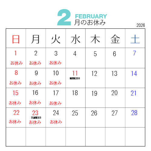 20251231 年末年始のお休み 2026年1月1日〜1月6日