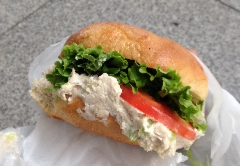 ベーグルサンド作り、オープン準備、接客、レジ打ち等。