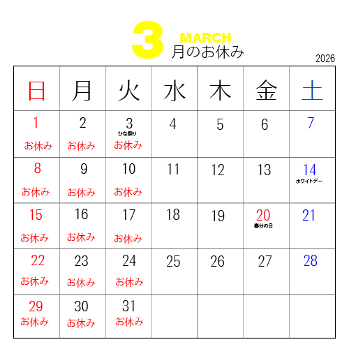 20251231 年末年始のお休み 2026年1月1日〜1月6日